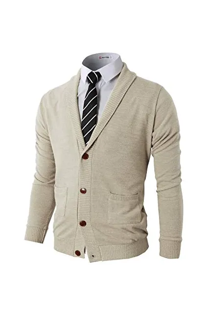 H2H Mens Casual Comfortable Fit Cardigan Sweater Shawl Collar Soft Fabric with Ribbing Edge