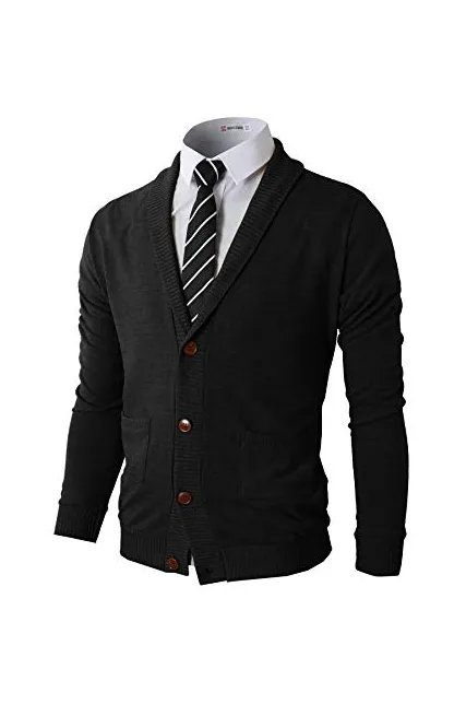 H2H Mens Casual Comfortable Fit Cardigan Sweater Shawl Collar Soft Fabric with Ribbing Edge