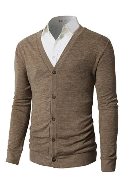 H2H Mens Casual Slim Fit Cardigan Sweaters V-Neck Long Sleeve Button-Down Basic Designed