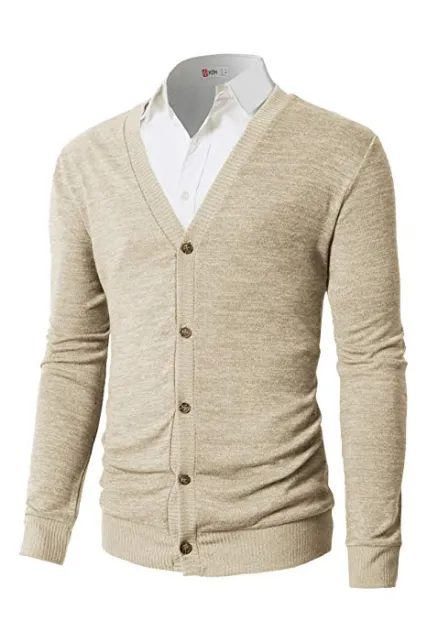 H2H Mens Casual Slim Fit Cardigan Sweaters V-Neck Long Sleeve Button-Down Basic Designed
