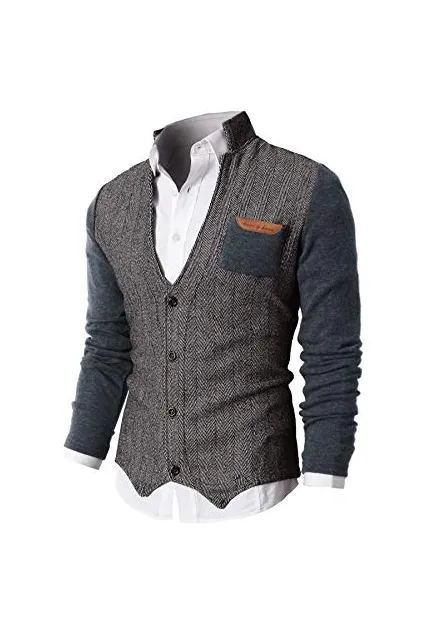 H2H Mens Casual Slim Fit Jacket Cardigans Long Sleeve Button-Down Two-Tone Herringbone