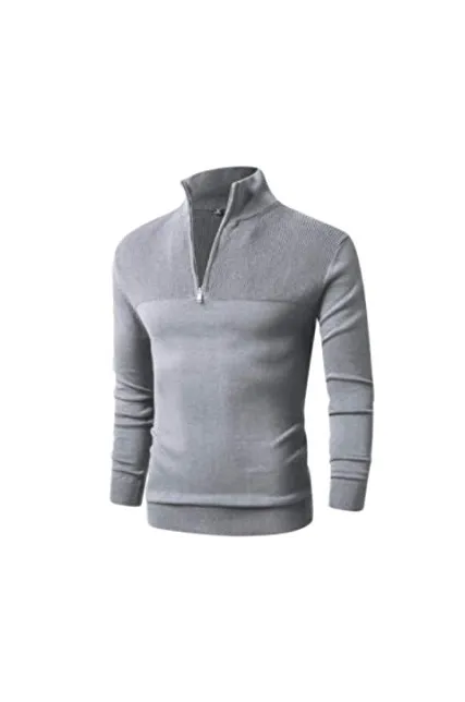 LTIFONE Mens Slim Fit Zip Up Mock Neck Polo Sweater Casual Long Sleeve Sweater and Pullover Sweaters with Ribbing Edge