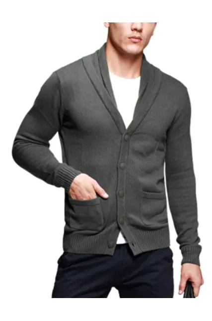 100% Cotton Imported Soft, stretchy, thermal knit, button down cardigan Ribbed shawl collar, 2 front pockets Ribbing at hem and on sleeve cuffs Moderate thickness, soft, warm and comfortable Lay flat to dry. Low iron if needed