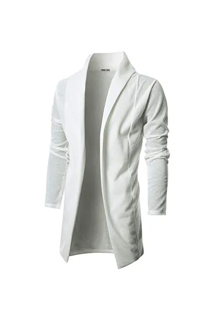 Ohoo Mens Long Sleeve Draped Lightweight Open Front Shawl Collar Longline Cardigan