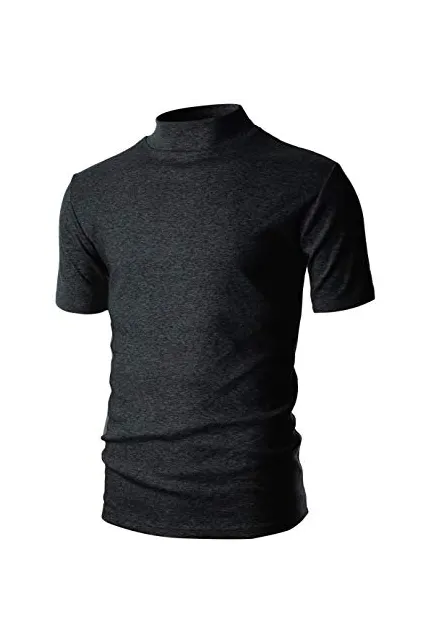 OHOO Mens Slim Fit Soft Cotton Short Sleeve Pullover Lightweight Mockneck with Warm Inside