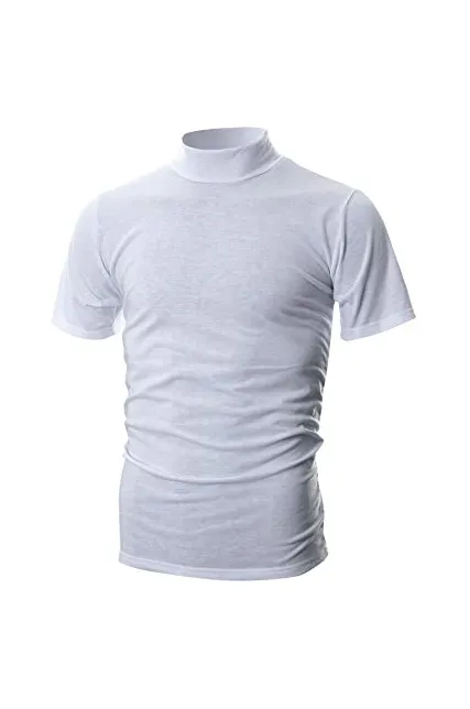 OHOO Mens Slim Fit Soft Cotton Short Sleeve Pullover Lightweight Mockneck with Warm Inside