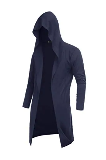 RAGEMALL Mens Long Cardigan Open Front Draped Lightweight Hooded Sweater with Pockets
