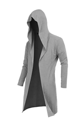 RAGEMALL Mens Long Cardigan Open Front Draped Lightweight Hooded Sweater with Pockets