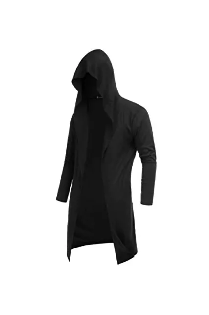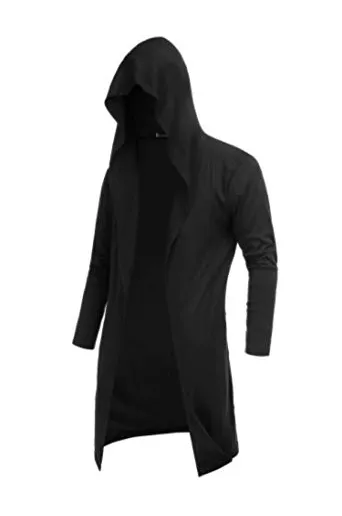 RAGEMALL Mens Long Cardigan Open Front Draped Lightweight Hooded Sweater with Pockets
