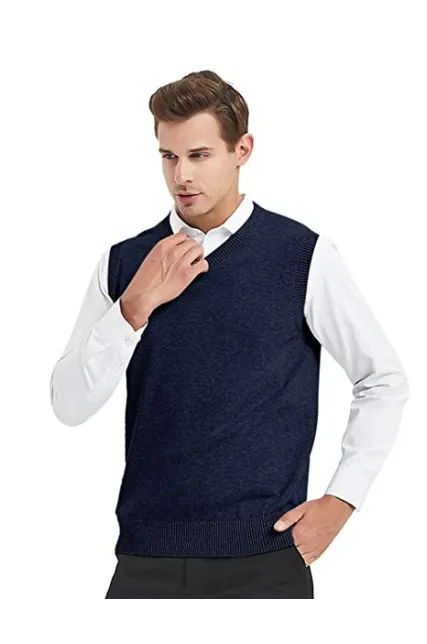 100% Cotton Material: 100% cotton, soft and comfortable. Natural fabric doesn't build up static, holds shape and not easy to pilling like other synthetic fabric. Size fit: slim (You may choose 1 SIZE UP if you want to be loose fit.) Package: 1 x sweater vest. Hand wash in cold water or gentle dry clean recommended, do not bleach. Basic knitted solid design, warm and gentle to wear. 12 gauge and 4 different colors: black, navy, charcoal, grey. Classic sleeveless V-neck sweater vest with ribbed hem. Looks good and fits well, can be worn with almost anything from golf clothes to sport coats.