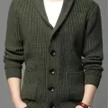 Material: 30%wool+30%acrylic+20%nylon+20%polyester. Knitted wool/nylon blend for warmth and durability. Available in sizes Small through XX-Large; 3 classic solid colors for choosing. Classic button-front shawl cardigan, 2 Front Patch Pockets, Casual Sweater. Occasion: Casual,work,daily, outdoor,etc; TIPS: Machine Wash/Hand Wash at low temperature.