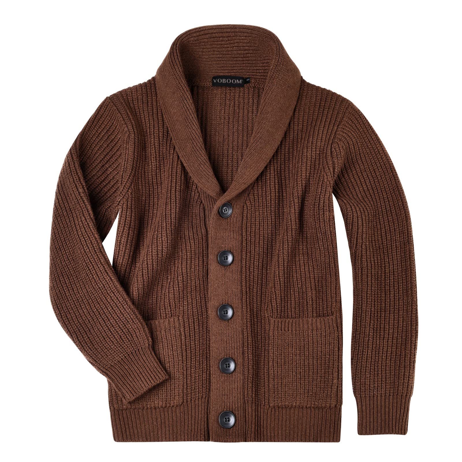 Material: 30%wool+30%acrylic+20%nylon+20%polyester. Knitted wool/nylon blend for warmth and durability. Available in sizes Small through XX-Large; 3 classic solid colors for choosing. Classic button-front shawl cardigan, 2 Front Patch Pockets, Casual Sweater. Occasion: Casual,work,daily, outdoor,etc; TIPS: Machine Wash/Hand Wash at low temperature.