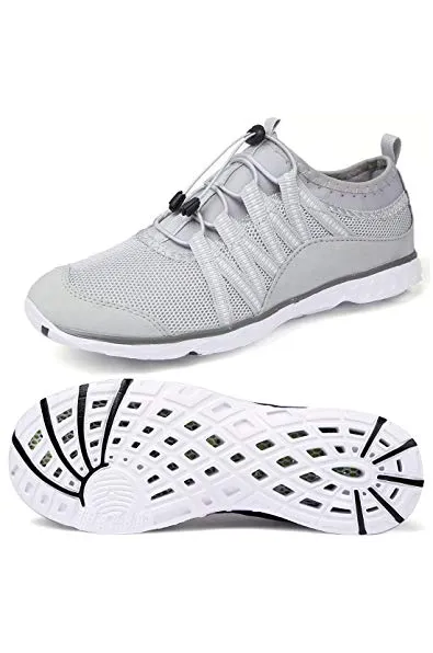 Fabric sole Comfy & Breathable: Soft Upper, Honeycomb Midsole and Stretchy Outsole, for good ventilation, shock absorbing, offer skin-friendly, cool and healthy shoe environment. Quick Dry & Foot Protection: Stretchy Drainage Outsole, Mesh Upper for Fast draining, Quick Drying, effectively foot protection, let each step all relaxed and comfortable. Lightweight & Fashion: Stylish Soft Upper and lightweight MD Outsole for Cross ventilation, Flexible, Comfortable, Skin-friendly, Breathable, offer barefoot feeling. Easy Put On and Off: Unique elastic laces, allow to adjust the width of your water shoes quickly, prevent from falling off while avoiding the trouble caused by tying the laces. Multi-occasion Shoes: For water park, swimming, surfing, beach volleyball, yoga, sailing, parasailing, boating, kayaking, windsurfing, walking, fishing, garden, driving etc.
