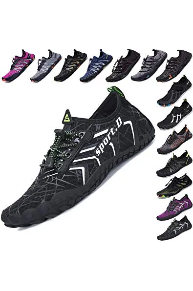[Premium Material]: Upper with stretch breathable ultra light weight fabric for fast draining and cross ventilation, give excellent flexible and comfortable. the thickened rubber sole has excellent durability and wear resistance, soft enough to prevent your toe from rubbing. [Ultra Lightweight & Portable]: Super lightweight, soft fabrics and rubber sole can be folded freely, easy to carry and store, convenience for leisure or any other sport activities. [Anti-collision Thickening Toe Part]: The Anti-collision Cushion protects toes from injury, enjoy a barefoot feeling no matter what activity you do. [Easy On and Off]: The pull tap at the heel allows for quick and easy entry,protecting your feet from dripping off. [OCCASION]: beach, swimming pool, swimming, diving, yoga, weight training, wake up, sailing, boating, kayaking, windsurfing, cycling, jogging, walking, fishing, beach volleyball, gardening, lawn, car wash, etc. [Size Tip]: Runs a half size large, so we recommend ordering a half size down