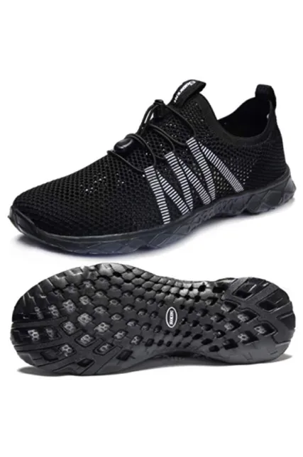 90% fabric Imported Rubber sole Quick Drying : Water shoes with open mesh upper and holed sole provides full range of drainage systems, drain off water and sweat in a very short time, keep your feet comfortable The super lightweight, soft and elastic sole, which can protect the feet as well as enhance the stability and comfort.Perfect sports shoes for beach and water sports. Professional anti slip outsole with strong track adhesion, even in the water can also provide a reliable grasping performance.Can also be used as a walking shoes for your daily walking. Good toe protection, can easily cope with the different conditions. Full covering design, evenly wrap your feet, to fit your feet and to protect your feet much better than other water shoes.