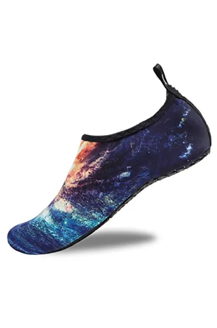 MORE SIZE OPTIONS: Compared with other water shoes in Amazon, we have more size options from children to adults. In order to help people with big feet buy suitable water shoes, we produce and sell larger sizes -13-13.5 M US Men (EU48/49). UPDATED STYLE CHOICES: We continue to design new style of water shoes, and constantly update our color. If you are looking for the latest style of water shoes, please come here and add us to the wishlist, your favorite is the next style. Ultra Lightweight: Super lightweight and flexible, make you feel great freedom and comfortable in wearing.Lightweight and compressible for easy packing,convenience for leisure or any other sport activities. PERFECT MATERIAL: 92% polyester+8% spandex Upper. Breathable Ultra Light fabrics with fine stretch on uppers, flexible and comfortable. Smooth designed neck prevents chafing when wearing our water shoes. FOOT SAFETY -- Wearable and top-quality rubber sole, which protects your feet from being hurt by sharp objects. With an ergonomically molded, shock absorption performance cushioning separated protective toe. OCCASION: You can use the shoes in many occasions,such as:water park,water class,cruise,hanging out,aqua zumba,aqua therapy,water park employees,waterfall hikes,etc.Take our shoes when you go to vacation.when you go to Hawaii,Mexico,Costa Rica ,Caribbean,Xplor Park,any famous place when you enjoy you free time.