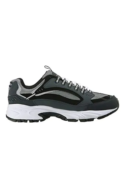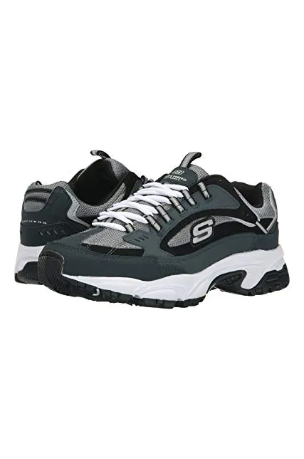 100% nubuck leather Imported Rubber sole Kick around town in the daylong comfort of the SKECHERS® Stamina Cutback sneaker. Nubuck leather and synthetic upper materials. Lace-up closure. Reflective hits add a boost of visibility in low lighting. Plush tongue and collar. Breathable fabric lining offers a great in-shoe feel. Memory foam insole. Stabilizer mid-foot design. Flexible, high-traction rubber outsole. Imported. Measurements: Weight: 13 oz Product measurements were taken using size 8, width D - Medium. Please note that measurements may vary by size. Weight of footwear is based on a single item, not a pair.