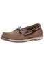 100% Full grain leather Imported Synthetic sole Heel measures approximately 0.75" Mocc-toe boat shoe featuring two-eyelet lacing and slotted collar Color of the item may be lighter due to lightning effect