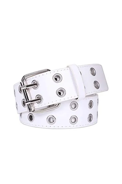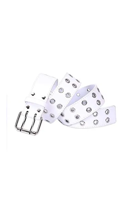 - Punk Rock Dress Belts -- PU leather belt studded double metal eyelet, stylish?but not exaggerated, Decorative jean belt for women&men for casual daily dress, party, club, skateboarding, dancing,