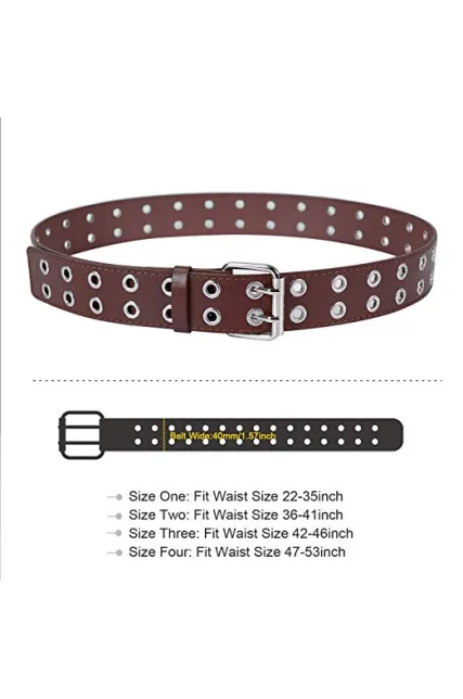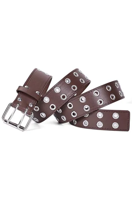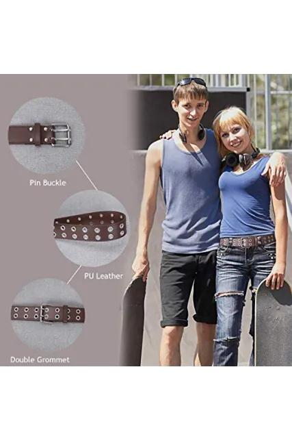 - ╭♥ Punk Rock Dress Belts -- PU leather belt studded double metal eyelet, stylish but not exaggerated, Decorative jean belt for women&men for casual daily dress, party, club, skateboarding, dancing,