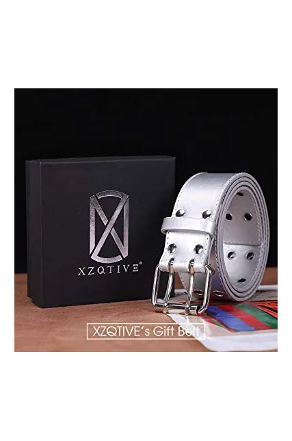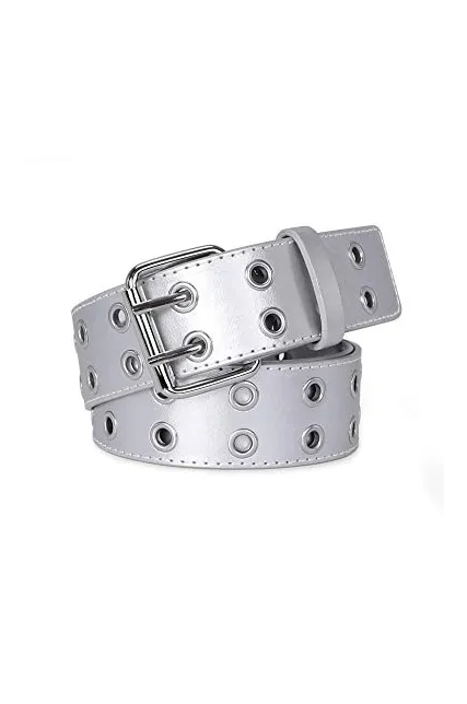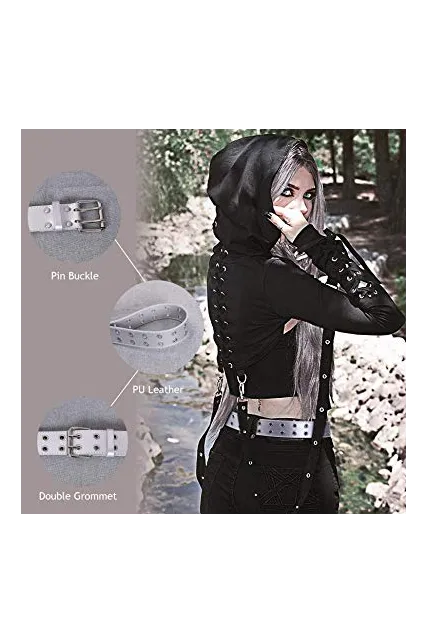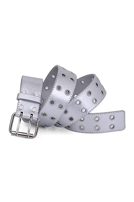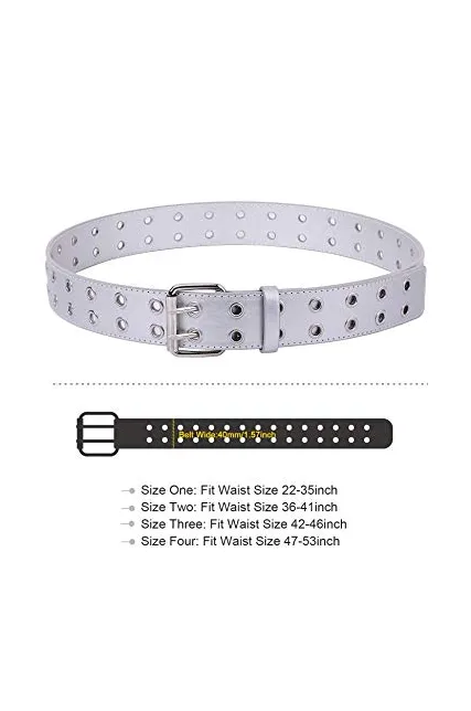 - ╭♥ Punk Rock Dress Belts -- PU leather belt studded double metal eyelet, stylish but not exaggerated, Decorative jean belt for women&men for casual daily dress, party, club, skateboarding, dancing,