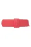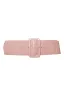 - Women's belt features traditional closure with large patent leather buckle and elastic band.