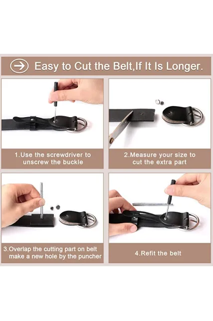 - ❤ Easy to Cut the Belt If It Is Longer: If the belt you have bought turns out to be longer than you expected, don’t worry about returning the items. It is very easy to trim the belt with our tools, by cutting it to your perfect fit. Please follow the instructions stated on the pictures