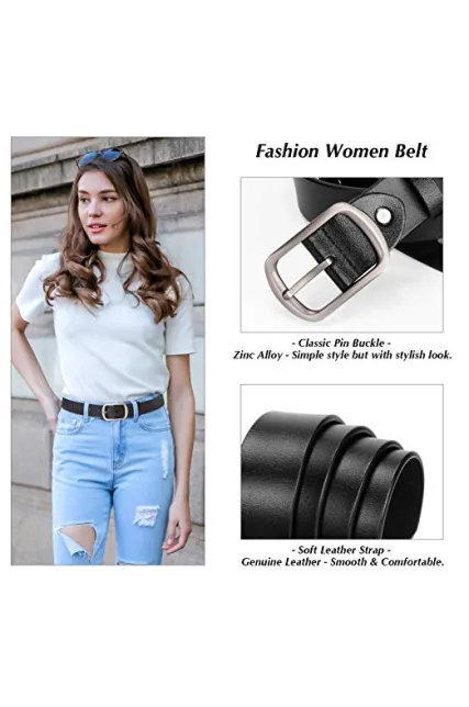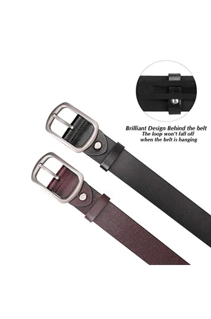 Fashion Womens Cowhide Leather Belts for Jeans Pants with Metal Pin Buckle Ladies Retro Vintage Leather Waist Belt By SUOSDEY