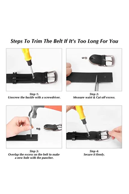 - Adjustable Size: Smaller Size Fit for waist size 24”-30”; Middle Size Fit for waist size 31”-35”. Larger Size Fit for waist size 36"-40". The belt width is 3.3cm/1.3 Inch. Can be trimmed with the punch tool which go with the belt. If the belt is too large for you, you can cut off excess length easily by yourself without any damage to the belt.