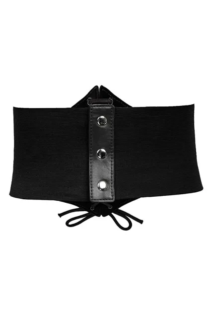 - PU leather underbust waist belt with elastic band and copper buttons