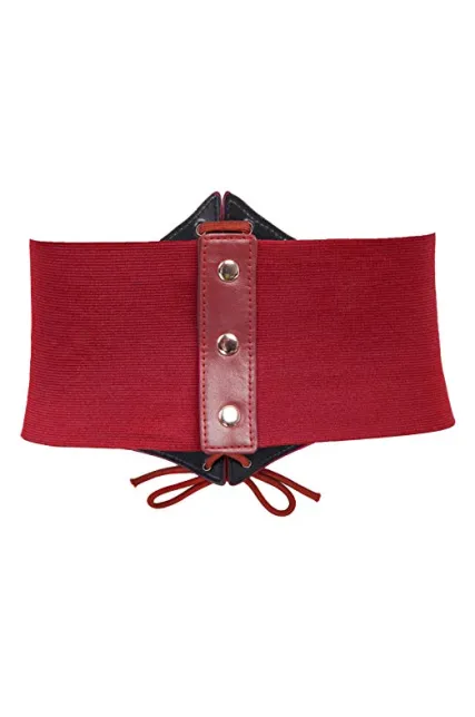 - PU leather underbust waist belt with elastic band and copper buttons