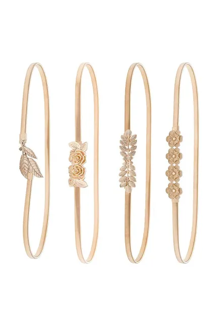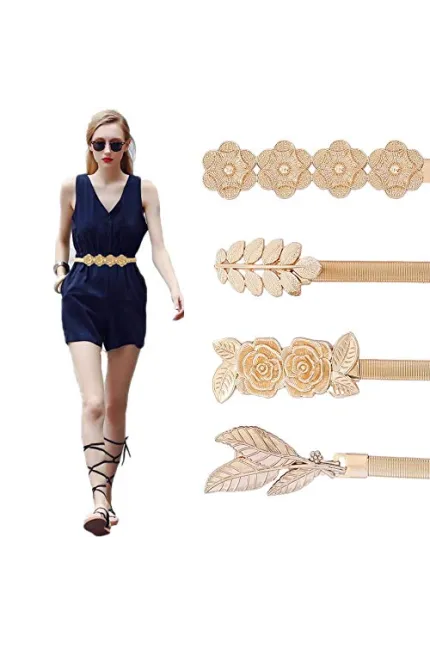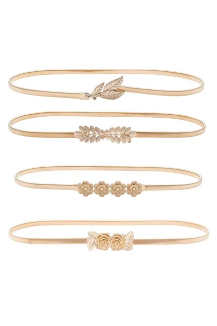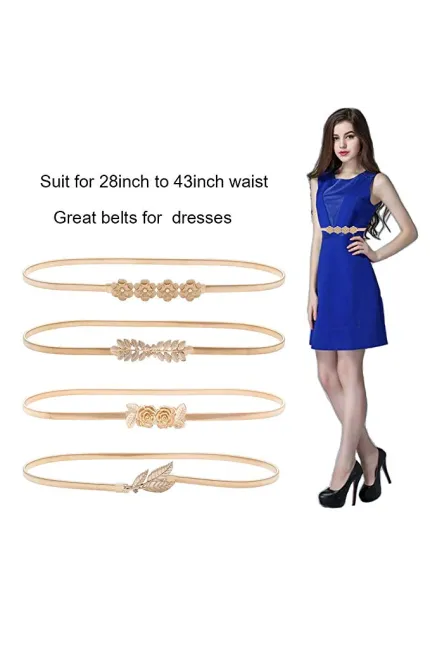 - Material: Metal buckle + Skinny Metallic spring chain. 4pieces of different styles belts in one pack, High quality advanced plating process guarantees no rust.