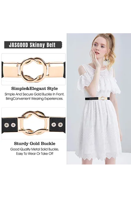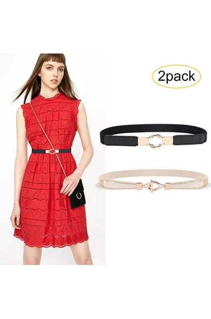 JASGOOD 2 Pack Women Retro Elastic Stretchy Metal Buckle Skinny Waist Belt 1Inch Wide