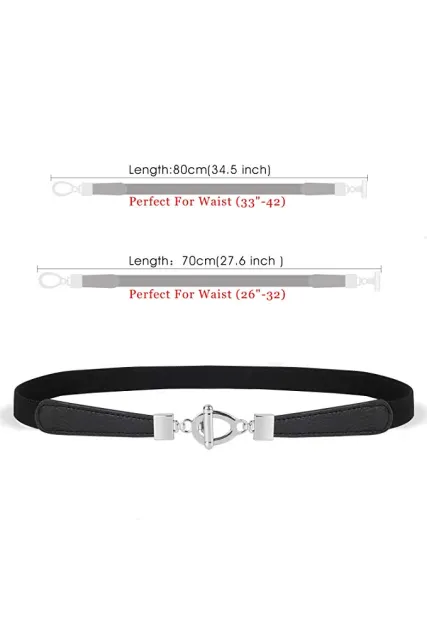 - ❁❁Size Of Elastic belt - Small: 26” - 32” (70cm), Medium-Large: 33” - 42” (80cm). And the width of the elastic belt is 0.98"-1.18”(2.5cm -3.0cm). The skinny thin belt. BELT STYLE: High Stretchy, Skinny ladies belt.
