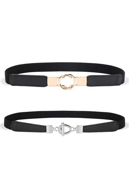 JASGOOD 2 Pack Women Retro Elastic Stretchy Metal Buckle Skinny Waist Belt 1Inch Wide