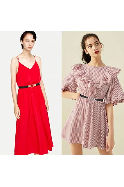 - ❁❁2 Pack - One prchase for 2 different colors elastic women skinny belt( Black/White, White/Brown, Black/Brwon). This thin elastic waist belt makes with well-made metal buckle, good quality faux leather.