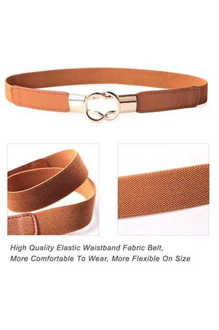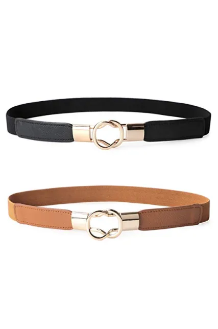 JASGOOD 2 Pack Women Retro Elastic Stretchy Metal Buckle Skinny Waist Belt 1Inch Wide