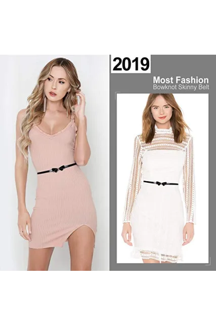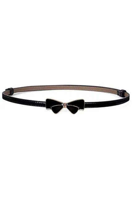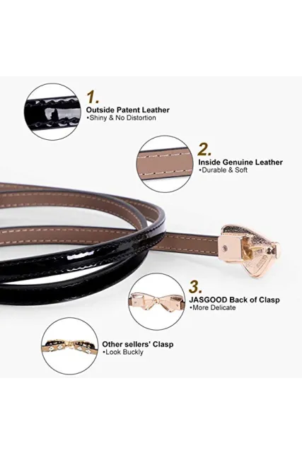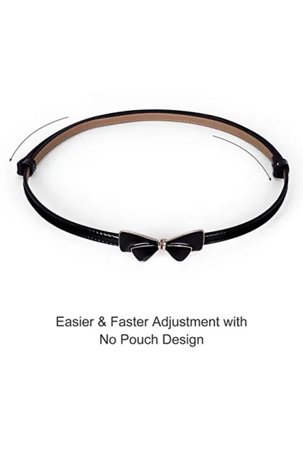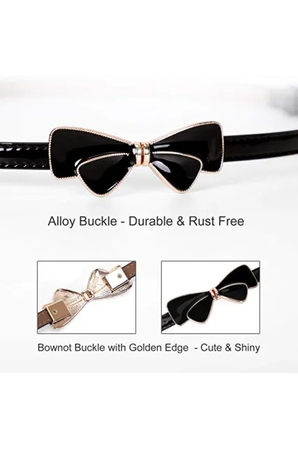 JASGOOD Women Bow Skinny Belt Shiny Leather Bow Belt Adjustable Thin Waist Belt for Dresses Fit 24-38Inch