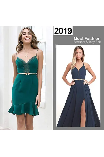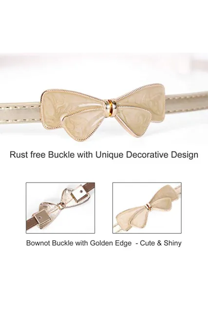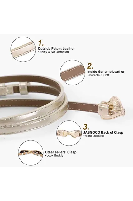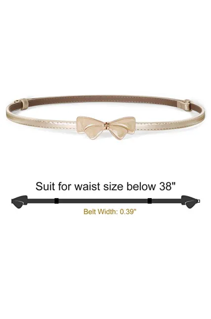 JASGOOD Women Bow Skinny Belt Shiny Leather Bow Belt Adjustable Thin Waist Belt for Dresses Fit 24-38Inch