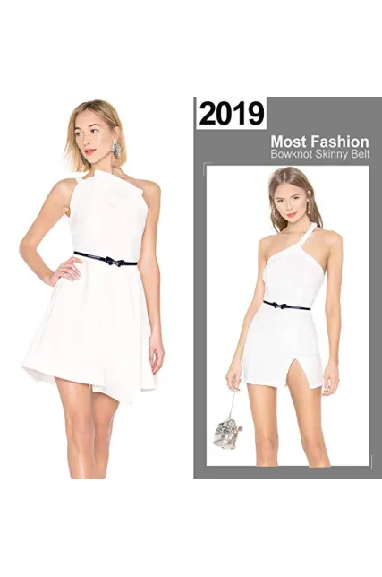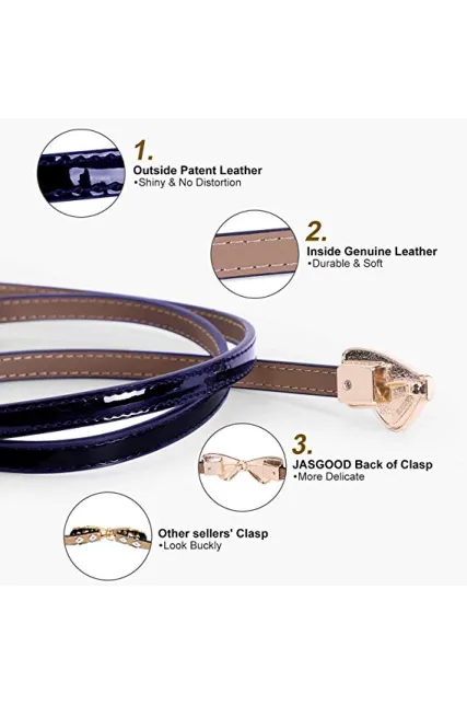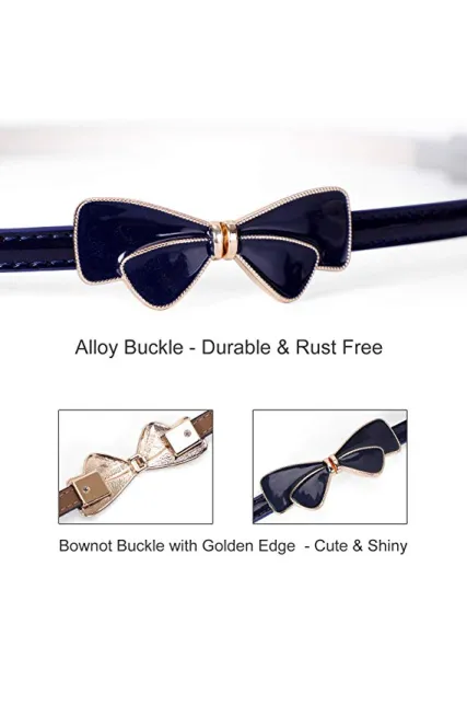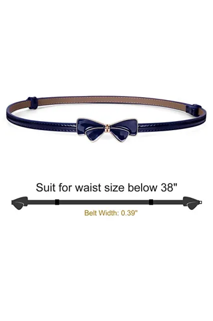 JASGOOD Women Bow Skinny Belt Shiny Leather Bow Belt Adjustable Thin Waist Belt for Dresses Fit 24-38Inch