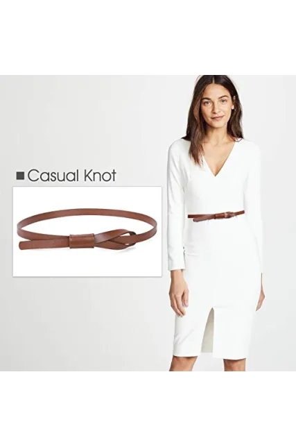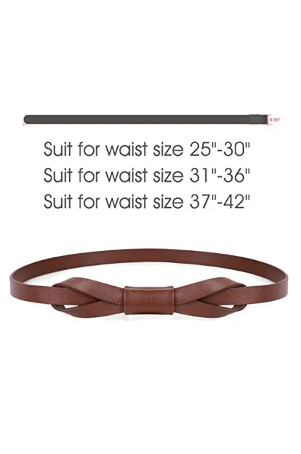 - How long and wide is this women belt?--- The skinny belt is suitable for waist size from 25”-41”, which covers the size from small size to plus size. Width 0.55 inch that is very skinny and thin for your dress.