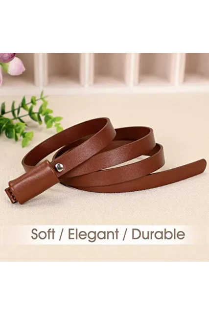 - What is the skinny belt made of ?--- Our women belt is made of top-quality soft leather and some small metal part. Soft,comfortable and durable to wear. Perfect skinny belt for women dress in summer.