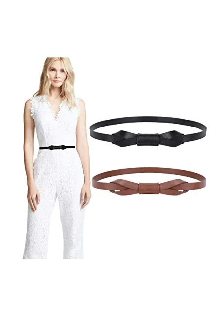 - How long and wide is this women belt?--- The skinny belt is suitable for waist size from 25”-41”, which covers the size from small size to plus size. Width 0.55 inch that is very skinny and thin for your dress.