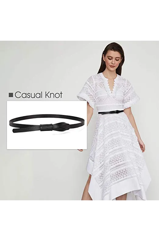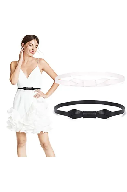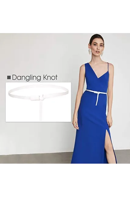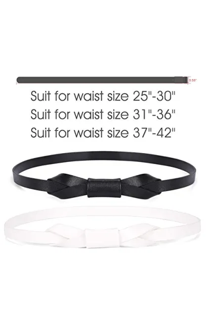 - How long and wide is this women belt?--- The skinny belt is suitable for waist size from 25”-41”, which covers the size from small size to plus size. Width 0.55 inch that is very skinny and thin for your dress.