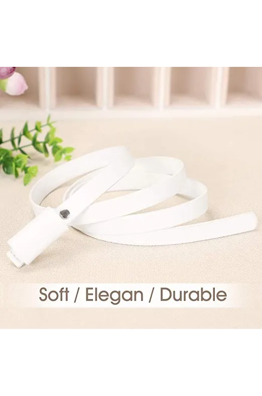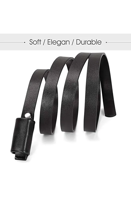 - What is the skinny belt made of ?--- Our women belt is made of top-quality soft leather and some small metal part. Soft,comfortable and durable to wear. Perfect skinny belt for women dress in summer.