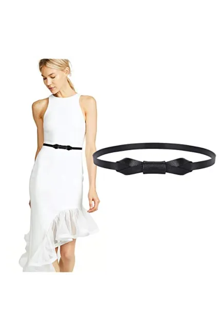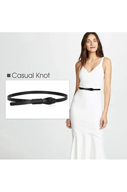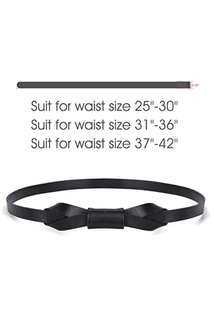 - How long and wide is this women belt?--- The skinny belt is suitable for waist size from 25”-41”, which covers the size from small size to plus size. Width 0.55 inch that is very skinny and thin for your dress.