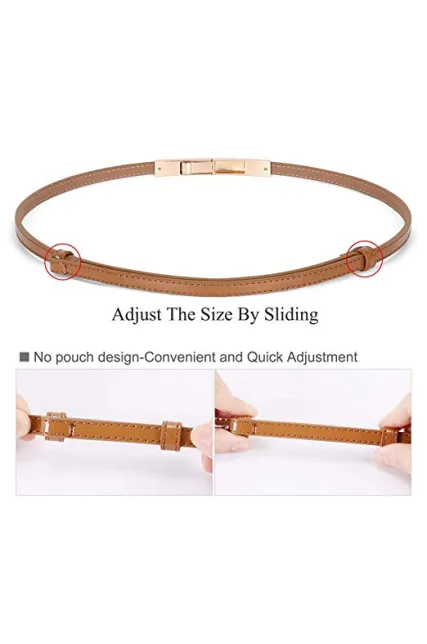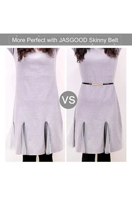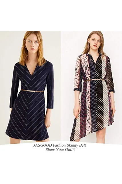 JASGOOD Women's Skinny Leather Belt Adjustable Slim Waist Belt with Gold Buckle for Dress Fit 24-38Inch