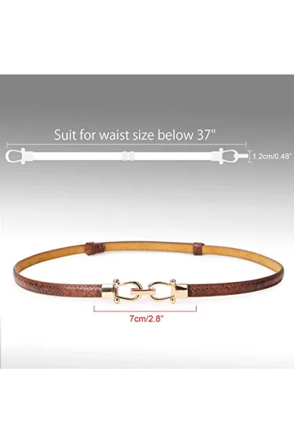 - ▶SIZE INFO--- This leather skinny belt is fully adjustable.Belt total length:97cm/38.8",perfect for waist size below 33",belt width 0.48";Buckle length: 2.8",buckle width: 0.72".(Consider about 2cm error)