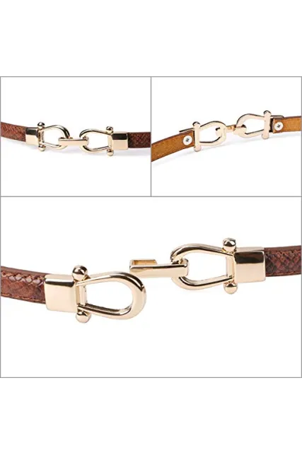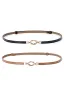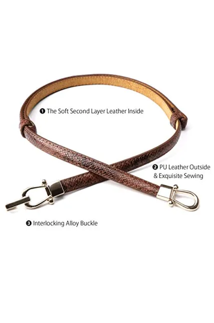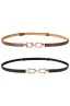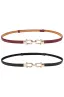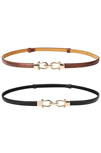 Leather Skinny Women Belt Thin Waist Belts for Dresses Up to 37" with Interlocking Buckle 2 Pack
