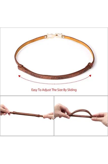 - ▶MATERIAL & COMFORT--- This 2 pack women thin belt is made of high quality genuine cowhide leather and raw leather inside,extremely soft and comfortable to wear.